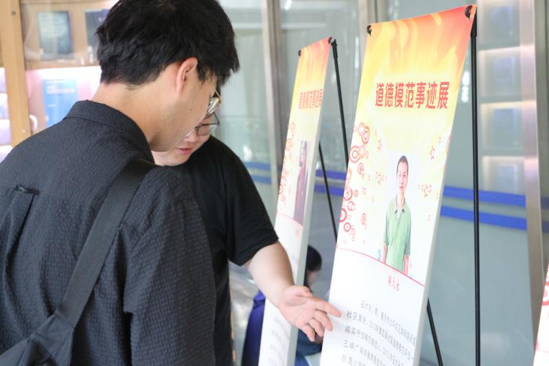 首先映入眼帘的是图书馆内展示的重庆市道德模范人物事迹,实践团成员们参观学习了道德模范人物事迹,通过观看展示板上的介绍和图片,了解了道德楷模们无私奉献、勇敢坚定的精神内涵。这些道德模范的感人事迹激发了实践团成员们的深思,大家在现场交流和讨论中分享了自己对这些道德模范的敬佩,并表达了向他们学习的决心。