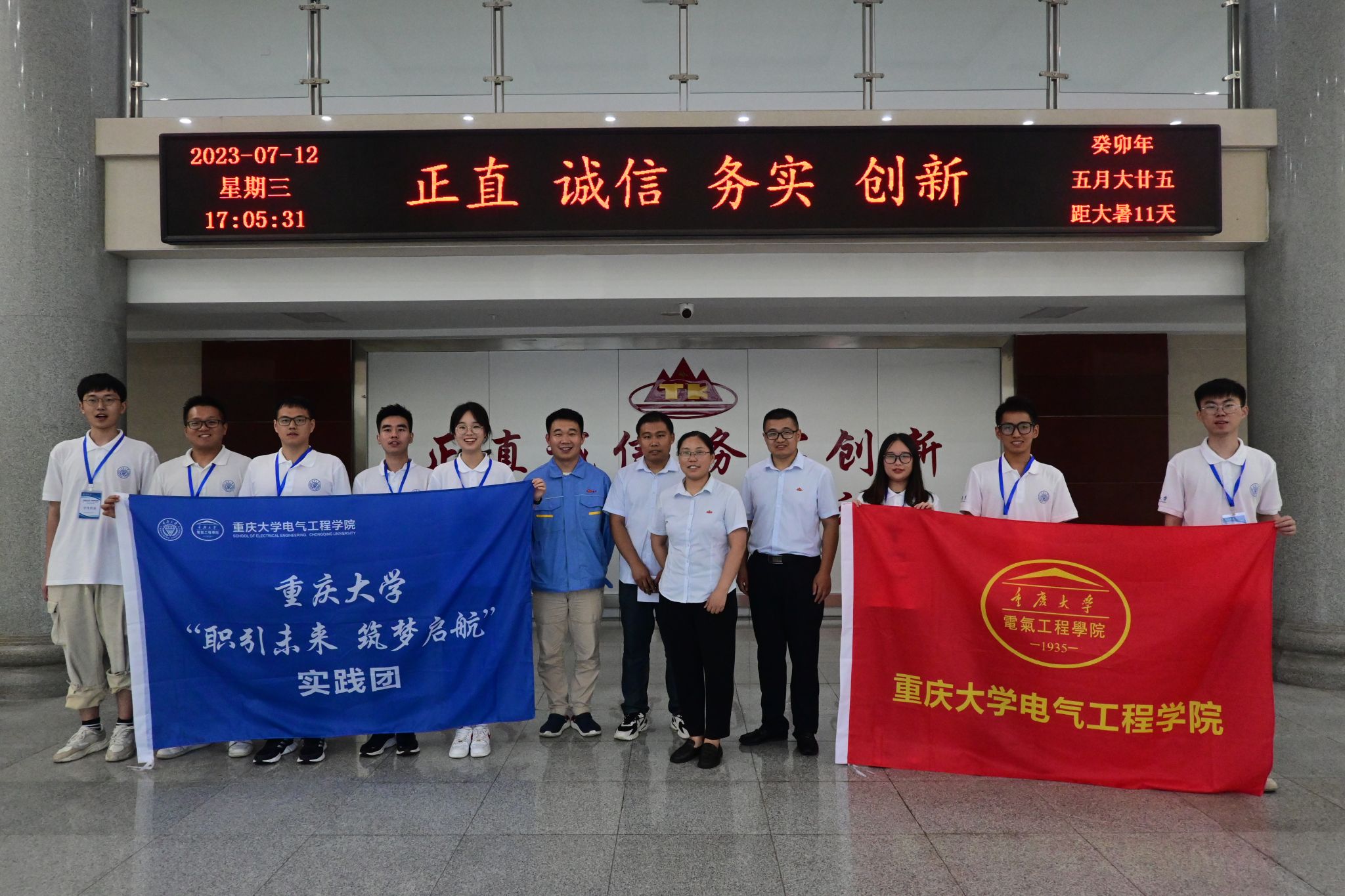 随后,实践团成员在企业人员的带领下还参观了“双百万”车间、电容器车间等。座谈会上,实践团成员就参观过程中产生的疑问结合自身的研究方向同企业技术人员展开热切交流并合影留念。