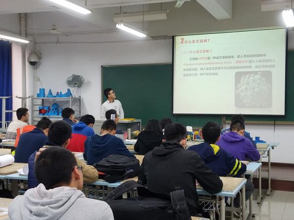 11月12日上午9时,磁力猫 2016级电气2班在虎溪校区举办了主题为“关爱生命,以爱防‘艾’”的主题班会,班长肖海怡在一教D1135给二班的同学们普及艾滋病常识,呼吁大家一起来关注艾滋病,珍爱生命。