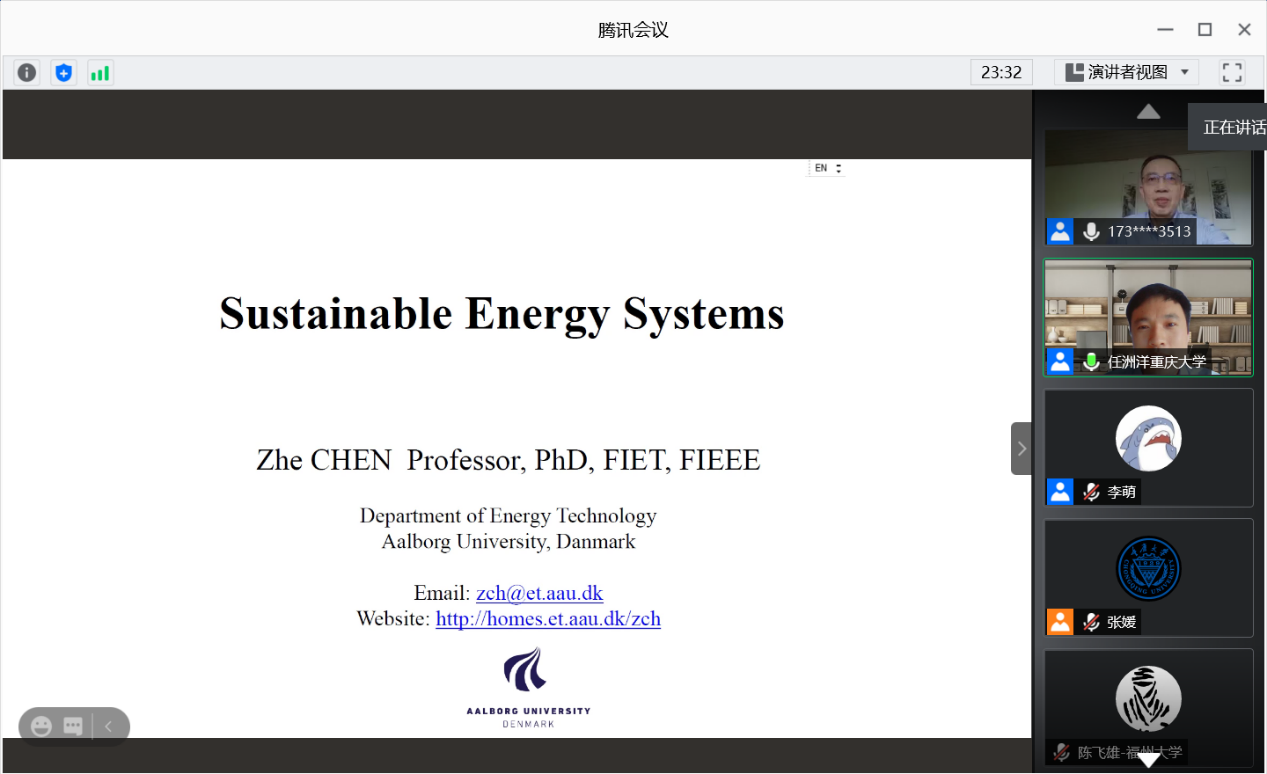 On the afternoon of June 12nd, 2021, Professor Chen Zhe, member of European Academy of Sciences and Arts and Danish Academy of Technical Sciences, was invited to deliver a speech at the "Online Lecture Hall" on the topic of " Sustainable Energy Systems". The series of online academic lectures were jointly organized by the School of Electrical Engineering of Chongqing University, the State Key L...