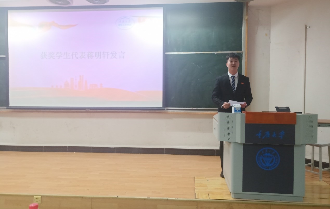 Jiang Mingxuan, a 2019 undergraduate of the school, spoke on behalf of the award-winning students. He stressed that the establishment of the UHV Power Grid Scholarship not only makes him feel the care from the state power industry but also encourages him to study hard with fuller enthusiasm and a more positive attitude. He said he was determined to make contributions to China's power industry with practical actions.