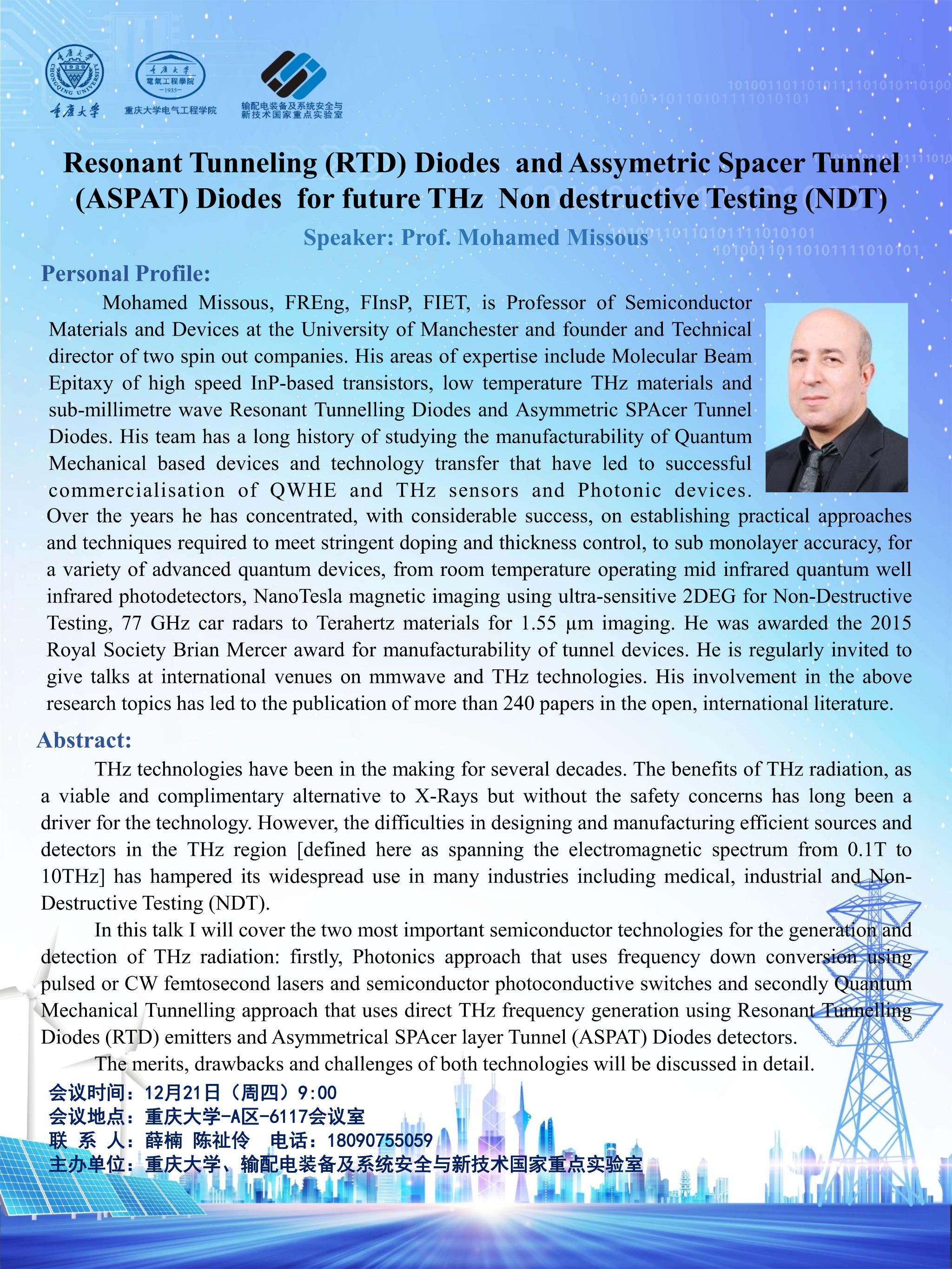 Conference Room 6117, School of Electrical Engineering, District A, Chongqing University